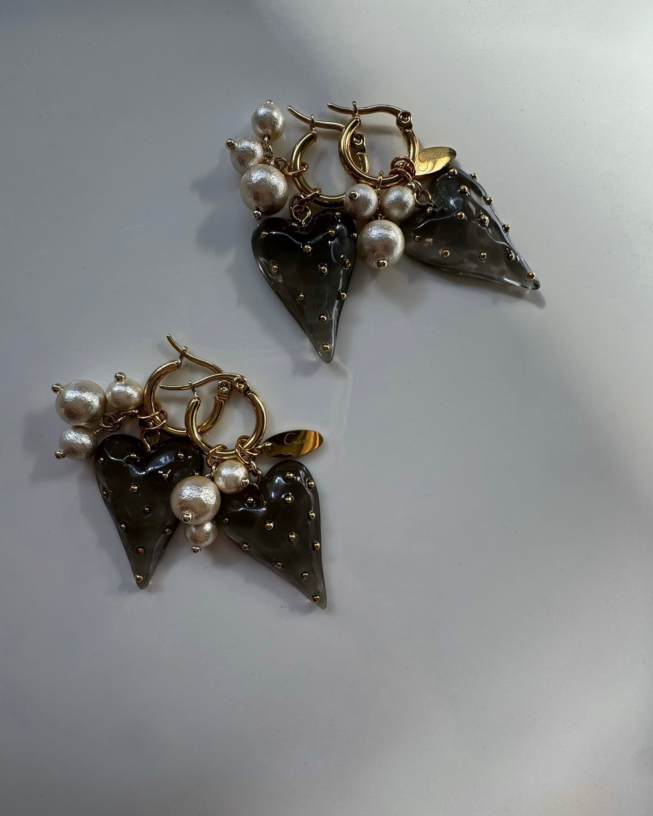 つぶつぶハートとコットンパールのピアス/イヤリング♡