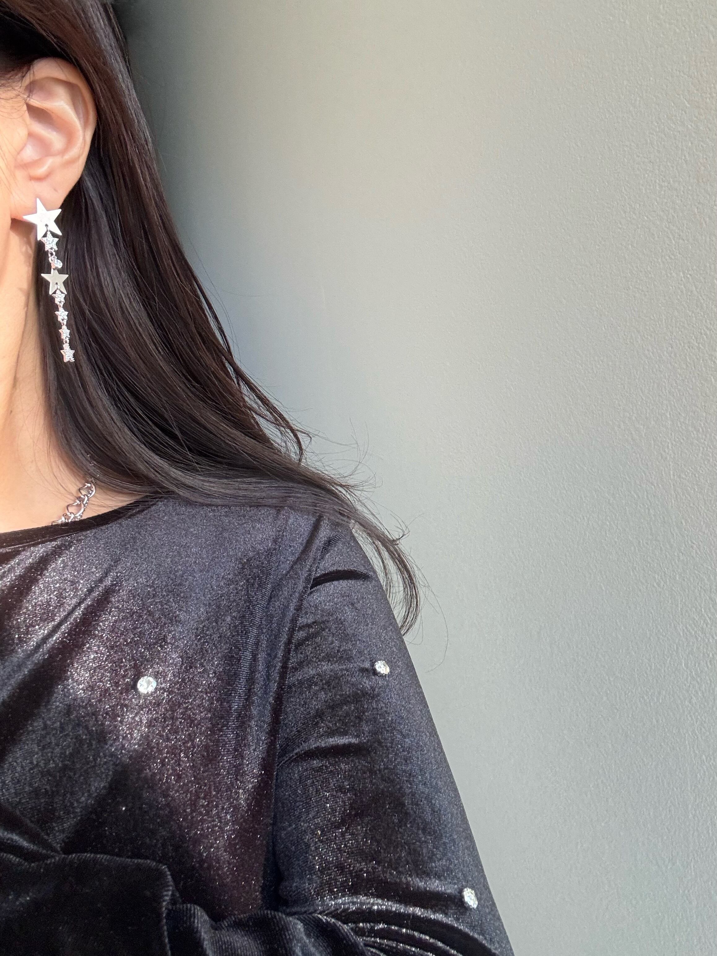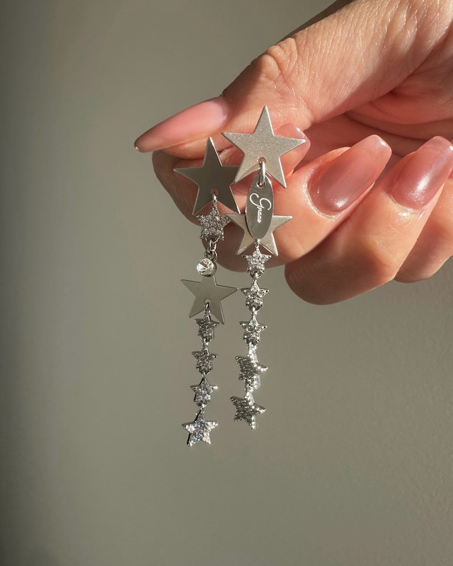キラキラ光る存在感のあるピアスで、