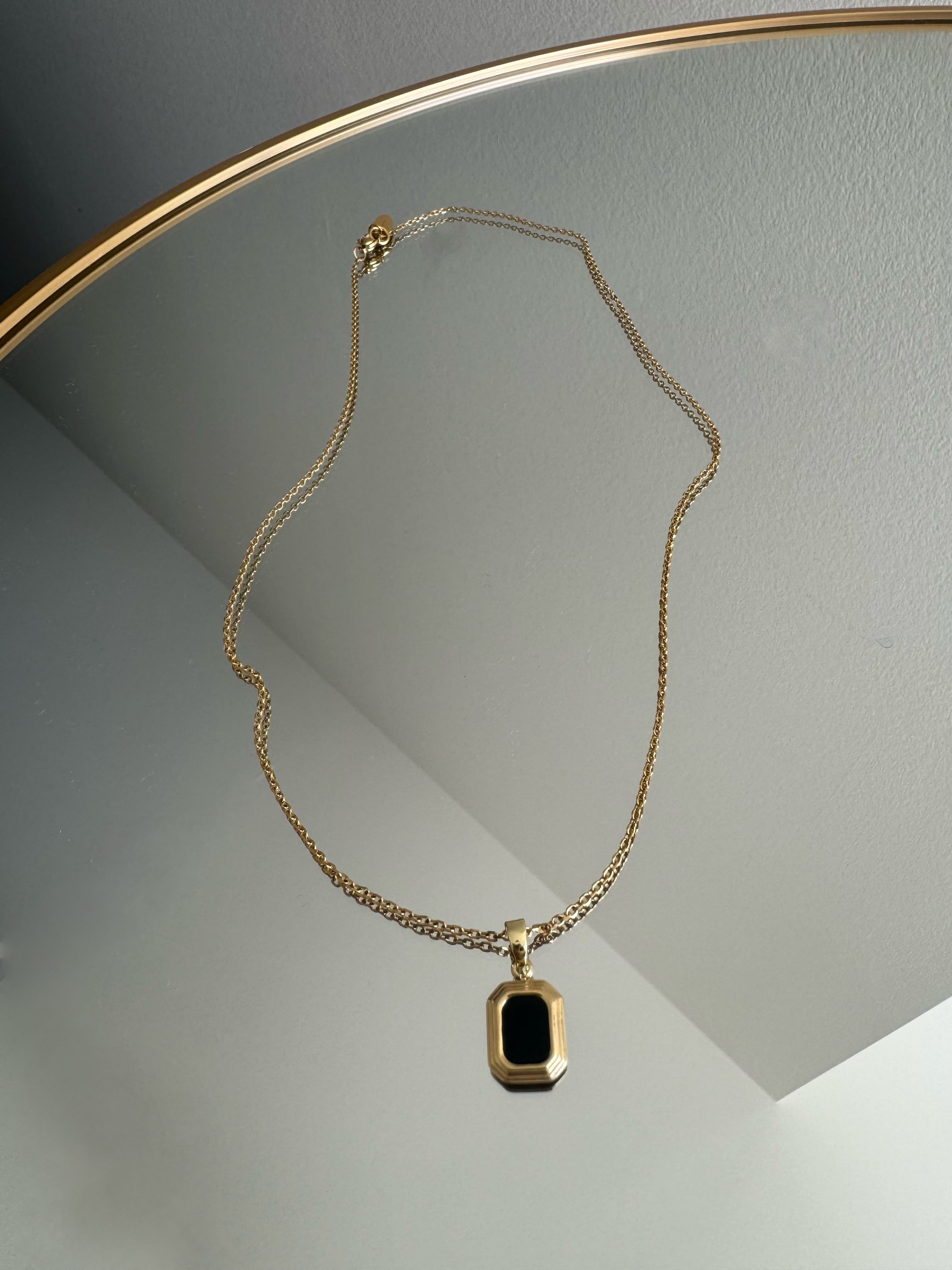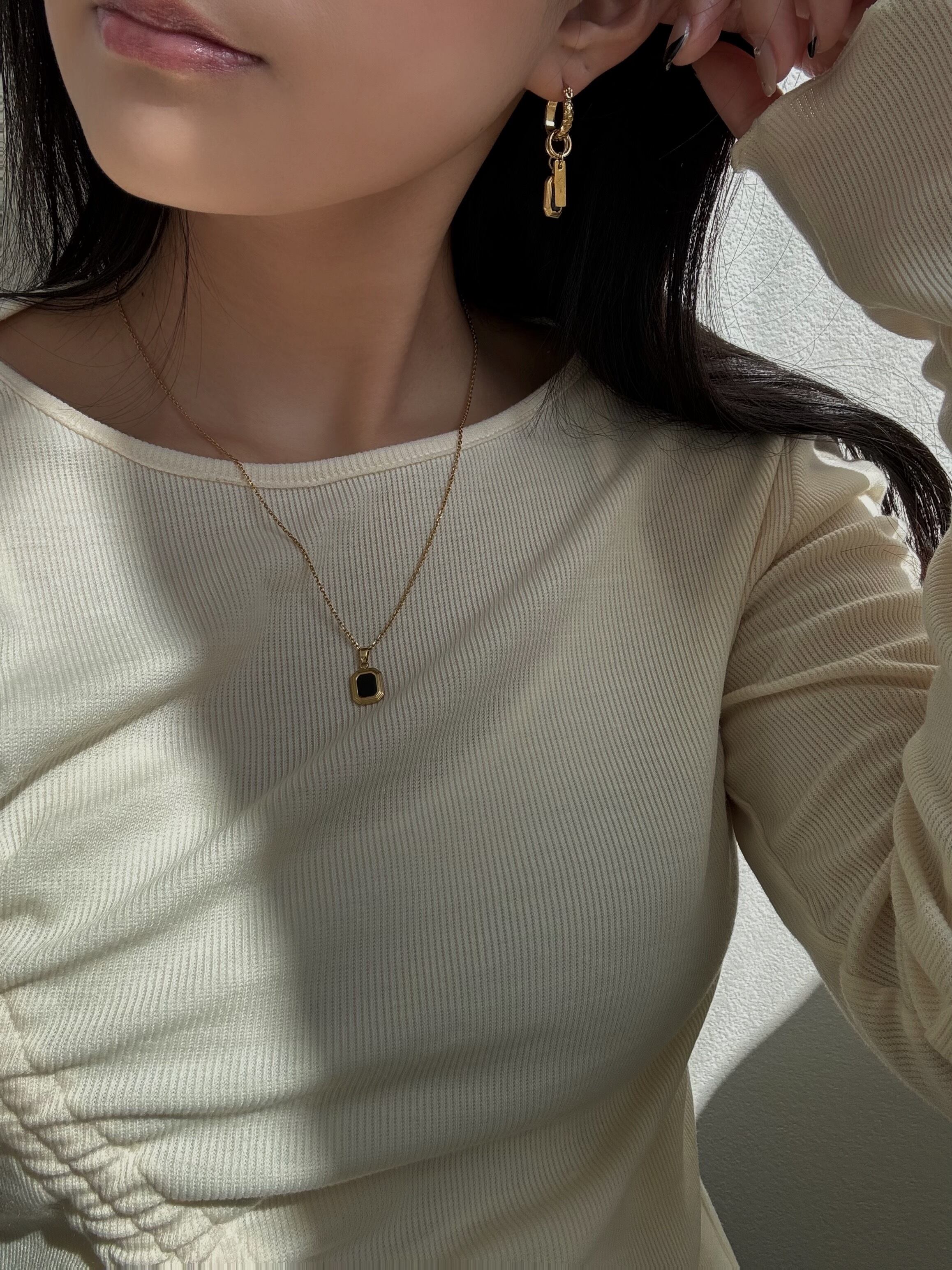 ブラックフレームがトップのネックレス